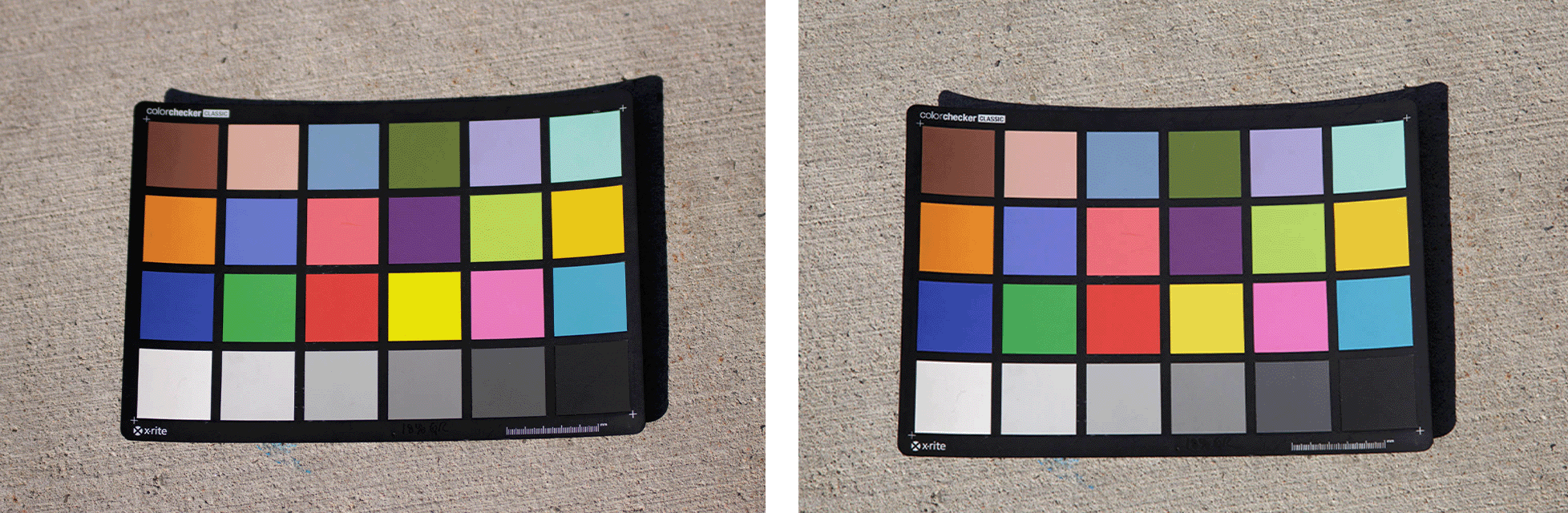 Left: Canon EOS 90D with X-Rite Color Checker Classic, Right: Canon EOS 5D Mark III with X-Rite Color Checker Classic
